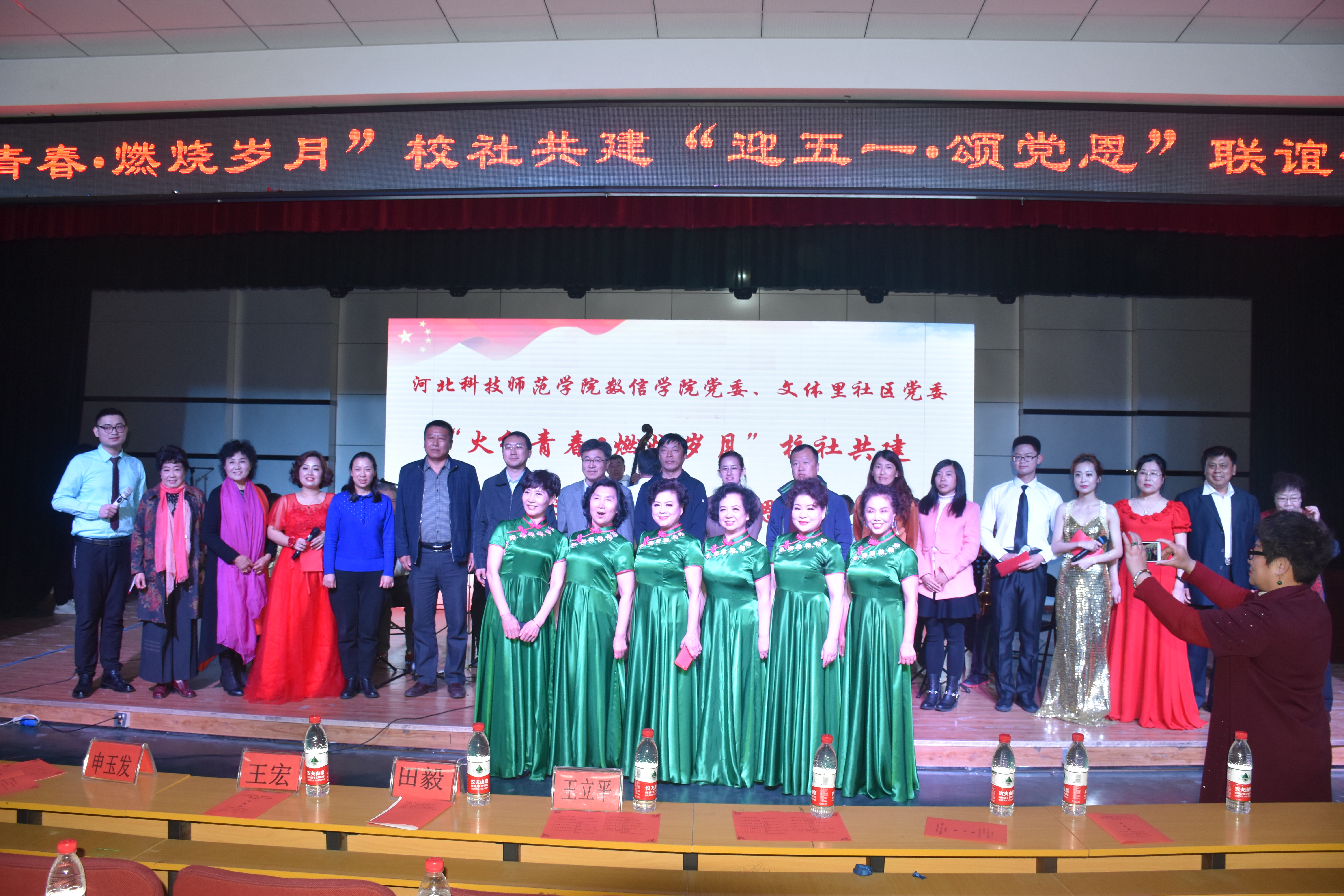 根据中共白塔岭街道工作委员会海白工字(2018)1号文件,“关于召开高校片区联合党委区域化党建工作推进会议的通知”,为了进一步贯彻党的十九大精神,深入实施“开放带动、服务互动、管理联动、文化驱动”发展战略。4月21日下午2:30在beats365亚洲版官网多功能厅,数学与信息科技公司党委与白塔岭街道文体里社区党委,联合举办了以“高校社区同携手,共驻共建共发展”为主题的“火红青春•燃烧岁月“校社共建,迎五一,颂党恩”联谊活动。河北科技师范公司党委组织部部长、白塔岭街道党工委书记、beats365亚洲版官网领导班子成员、员工工作人员、白塔岭街道办事处主任、文体里社区党委书记及社区居民、高校师生等近400人参加了联谊活动。
