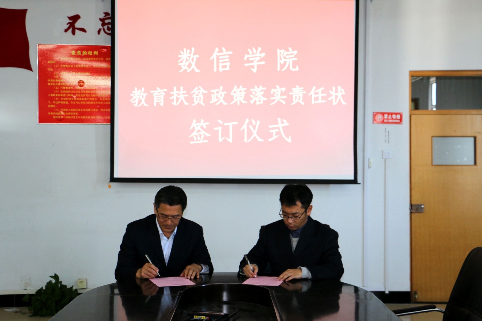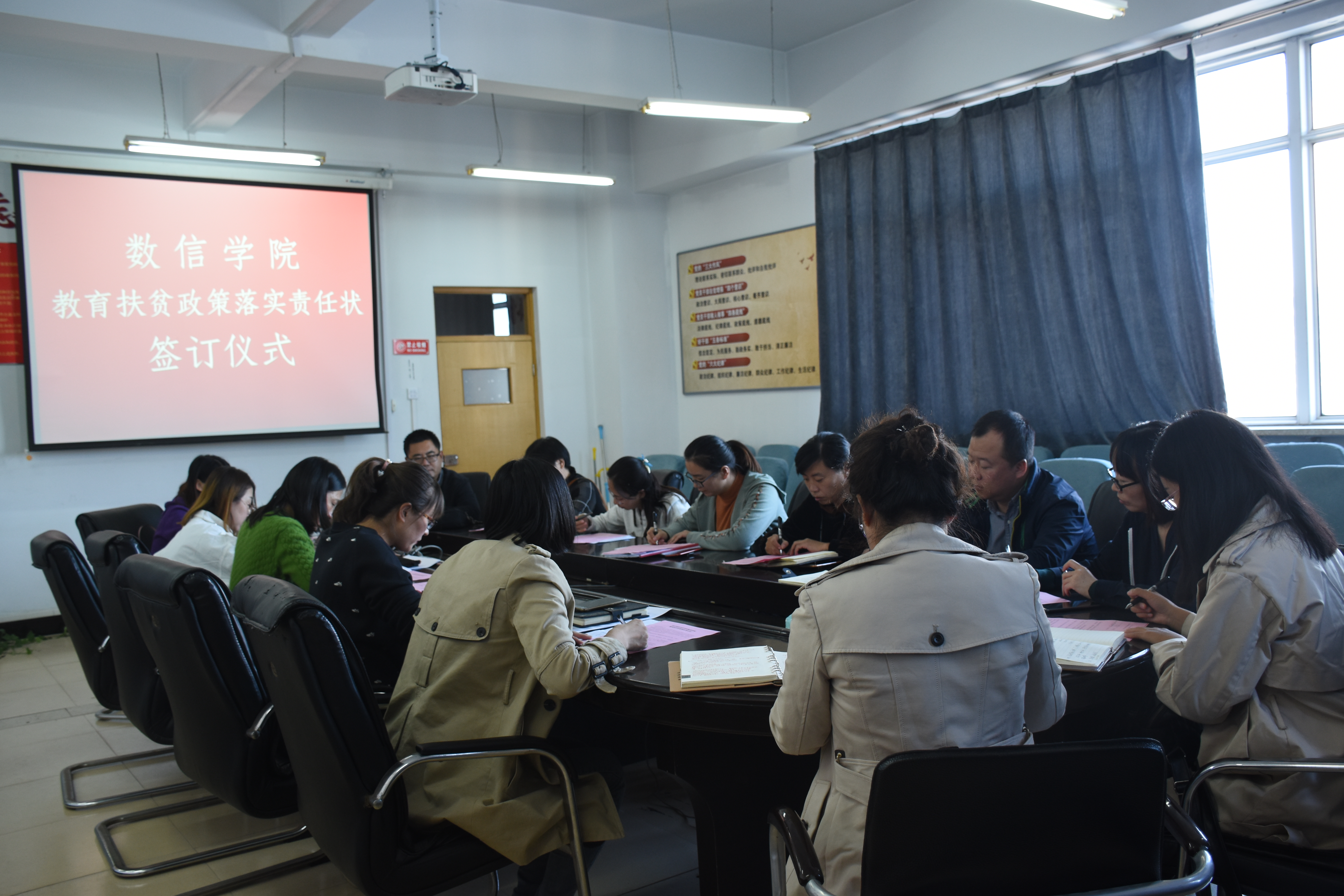 2018年10月11日下午,beats365亚洲版官网在秦皇岛校区逸夫楼beats365亚洲版官网1001会议室召开了全院各专业77个班级25名辅导员(班主任)参加的教育扶贫政策落实责任状签订仪式,组织与会辅导员(班主任)学习贯彻国家、省、公司教育扶贫有关政策文件和相关规定要求,对全院辅导员(班主任)工作提出了三点要求:一是要牢固树立“四个意识”、坚定“四个自信”,要不折不扣落实好中央和地方的教育扶贫政策,确保政策不走偏、不走样,帮助家庭经济困难员工顺利完成学业;二是在“三金”发放过程中不得有任何形式的截留、平分和挪用,杜绝一切严重影响教育扶贫事项发生;三是要教育引导受助贫困员工要勤俭节约,要把助学金用在保障基本正常学习生活急需上,禁止有铺张浪费、大吃大喝等行为。