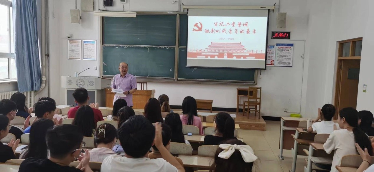 6月8日下午,beats365亚洲版官网数学与信息科技公司党委书记申玉发为全体毕业生党员讲授以“牢记入党誓词,做新时代青年的表率”为题的专题党课。