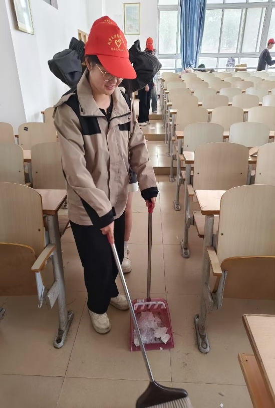 活动伊始,支部成员在教学楼教室整齐集合,党支部书记就活动流程、安全事项及分工安排进行详细部署。随后,支部成员兵分三路,高效投入服务:第一小组对校园电动车停放区展开全面规整,将随意停放的车辆归位至划线区域,引导员工养成规范停车习惯;第二小组深入教学楼,细致清扫地面、擦拭桌椅黑板、整理讲台设备,为师生营造舒心的学习环境;第三小组手持清洁工具,穿梭于校园主干道、花园及绿化带,清理落叶、纸屑等杂物,让校园角落焕发新颜。经过数小时的齐心协力,校园面貌焕然一新。