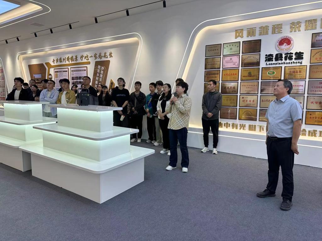在参观过程中,百信花生种植专业合作社负责人为师生们详细介绍了合作社的创办历史和初心。合作社自成立以来,始终致力于推动农业信息化的发展,通过不断引进先进的农业技术,帮助当地农民实现增产增收,带动了滦县农业产业的发展。