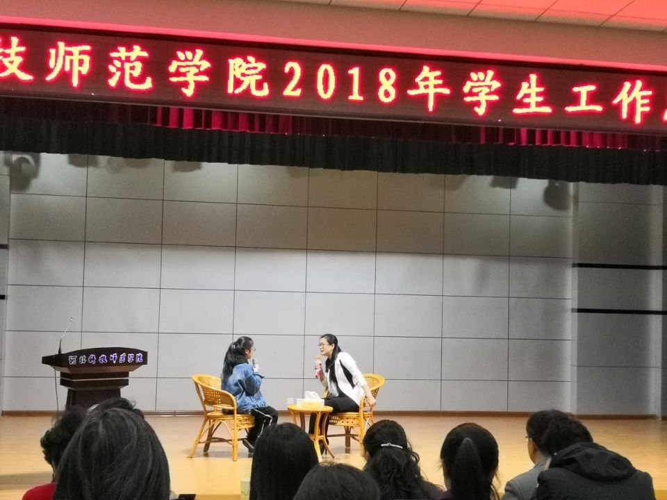 会上,代表公司参加河北省辅导员职业技能大赛并取得优异成绩的赵彤、李娜、程琳3位辅导员分别对参赛项目进行了职业技能展示,其中公司专职辅导员李娜老师现场进行了谈心谈话比赛项目的职业技能精彩展示。