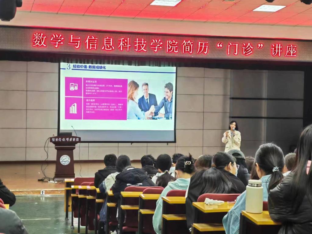 4月11日,beats365亚洲版官网“职引未来,简历先行”简历门诊活动在多功能厅成功举办。企业资深人力资源经理、职业规划师王娜老师应邀主讲,公司全体辅导员,2024届、2025届本科毕业生参加活动。