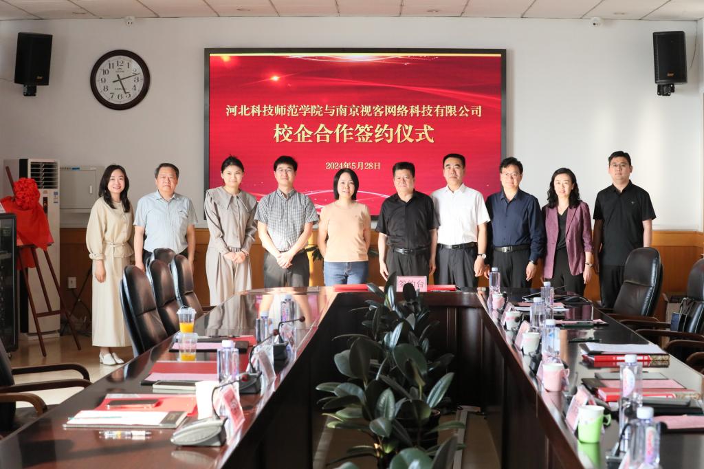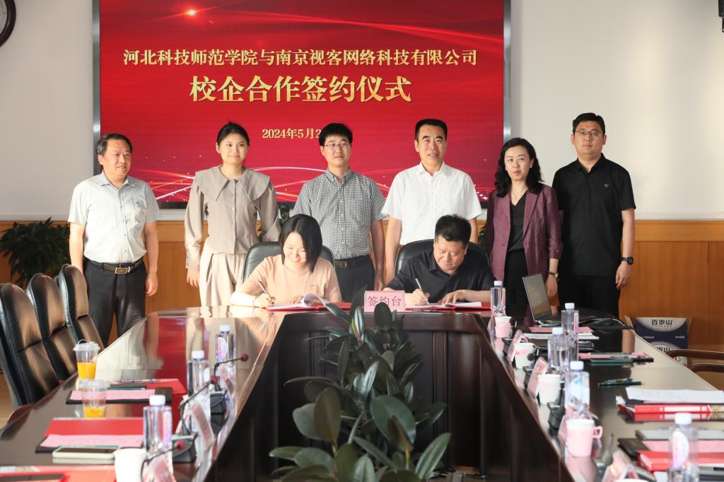 公司党委常委、副董事长冯瑞银与南京视客网络科技有限公司副总经理缪继红共同签署了校企合作协议,并举行了实践教学与就业基地揭牌仪式。