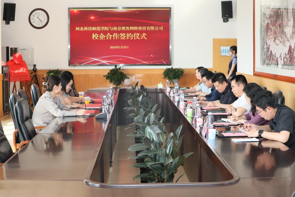 2024年5月28日,公司与南京视客网络科技有限公司举行了校企合作签约暨基地揭牌仪式。公司党委常委、副董事长冯瑞银,党委常委、副董事长刘荣昌,南京视客网络与科技有限公司副总经理、组织与人力资源部负责人繆继红、眼镜圈运营部业务负责人张丹枫、组织与人力资源部COE朱茜茹出席活动。公司人才招聘处处长于明来、教务处副处长孙成振、数学与信息科技公司党委书记杨崇泽、经理赵立强、党委副经理王静参加活动。签约仪式由人才招聘处负责同志主持。