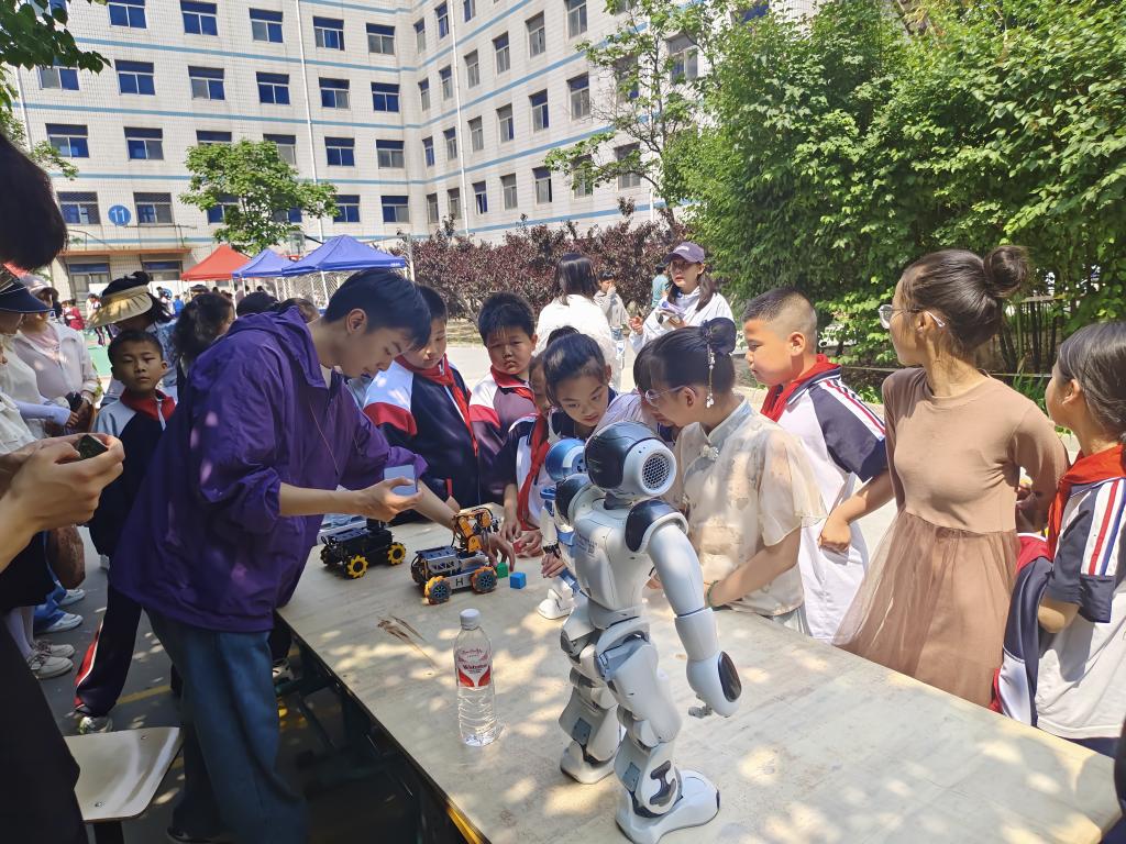 2025年六一儿童节前夕,beats365亚洲版官网人工智能教学部师生应海阳小学之邀,携智能分拣小车和机器人参加科创展,为小员工上了一堂人工智能的启蒙课。团队以专业科技展演与趣味互动体验,为孩子们打造了一场沉浸式科技启蒙之旅,让前沿科技在童真世界里绽放别样光彩。