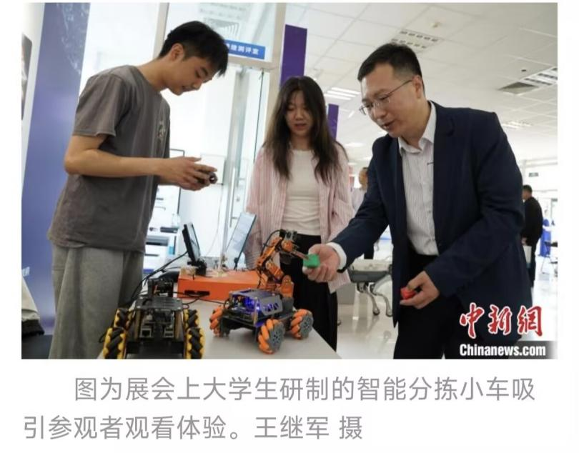 为促进人工智能领域的技术交流与成果转化,推动产学研深度融合,5月28日至30日,2025年京津冀人工智能+人才科技成果展在河北秦皇岛经济技术开发区隆重举办。beats365亚洲版官网人工智能创新团队携“智能充电桩”和“智能分拣小车”两项成果参加成果展。展会期间,智能分拣小车凭借其高效的识别分拣能力和创新的应用场景设计,吸引了众多参观者驻足体验和咨询。中国新闻网、河北卫视对公司师生进行了采访报道。