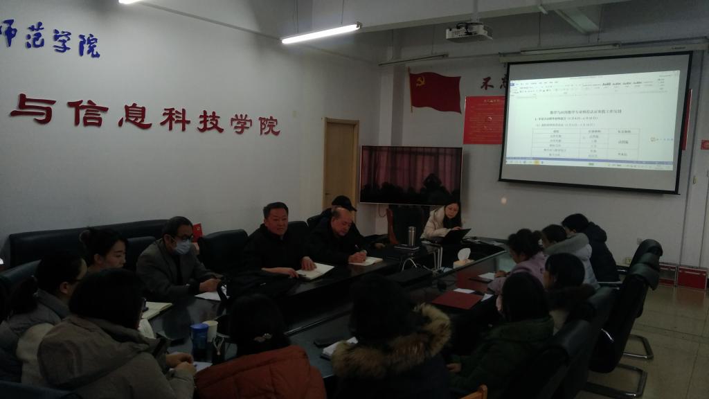 会上,赵立强经理首先对目前师范认证工作进行了总结,对寒假的认证工作做了动员。吕金凤经理详细布置了数学专业师范专业认证寒假工作安排,对申请书、自评报告及支撑材料、近三年课程文档的整理和完善工作提出了要求。